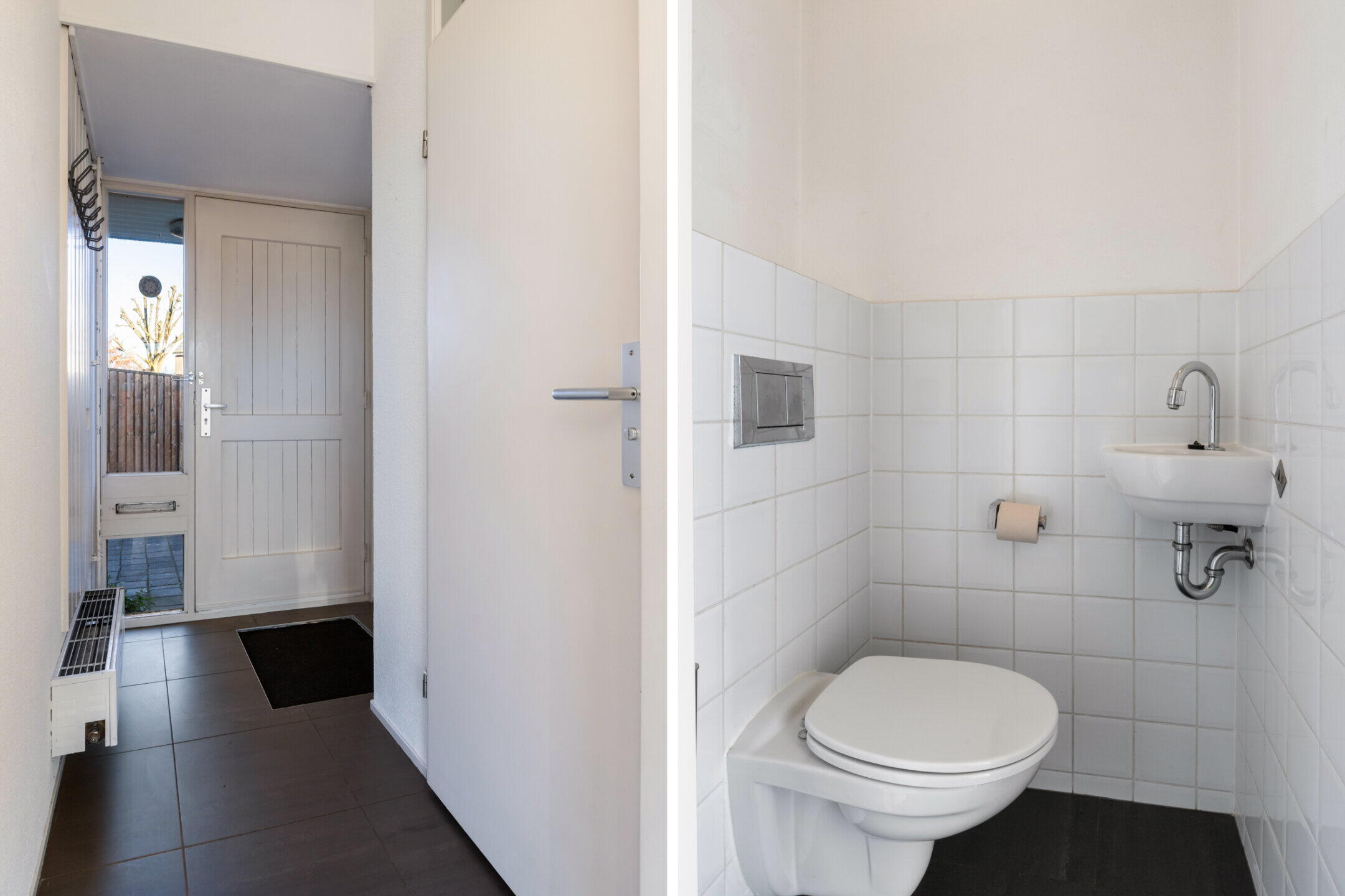 Entree, meterkast, toiletruimte en toegang tot de living.