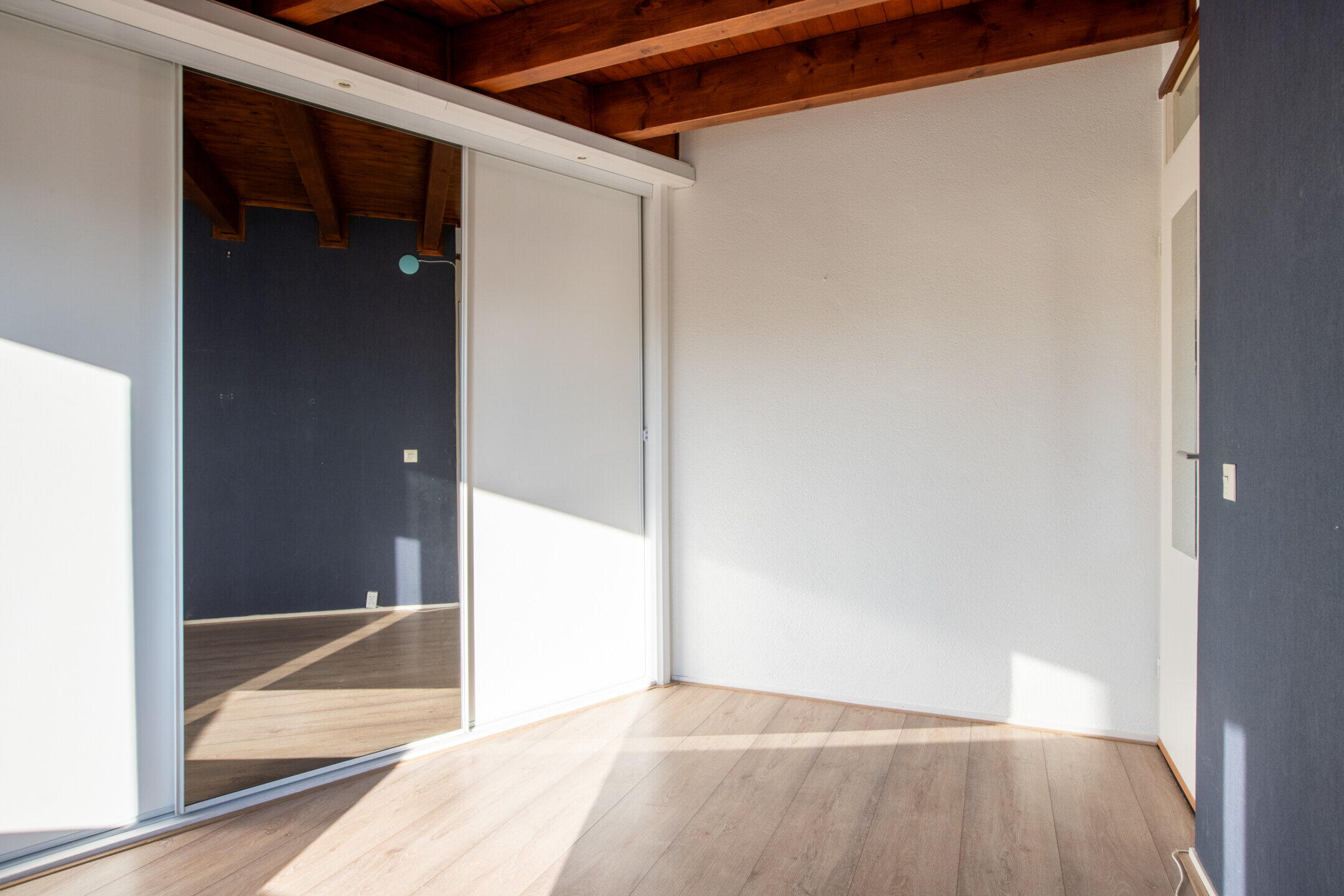 Ruime hoofdslaapkamer (1) 16.5m2 aan de achterzijde met vaste kast. Slaapkamer annex werkkamer (2) aan de achterzijde ca. 5.6m2.