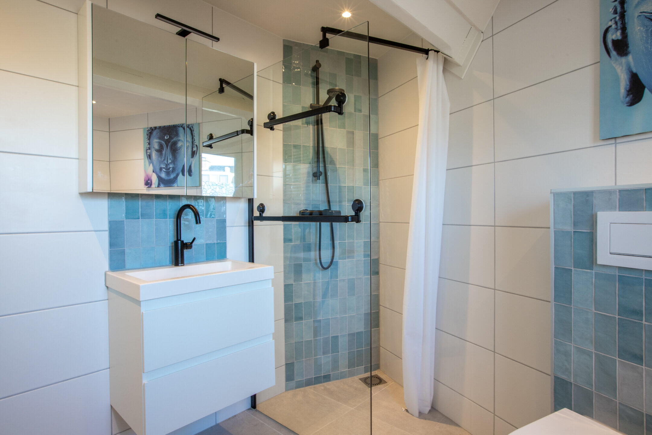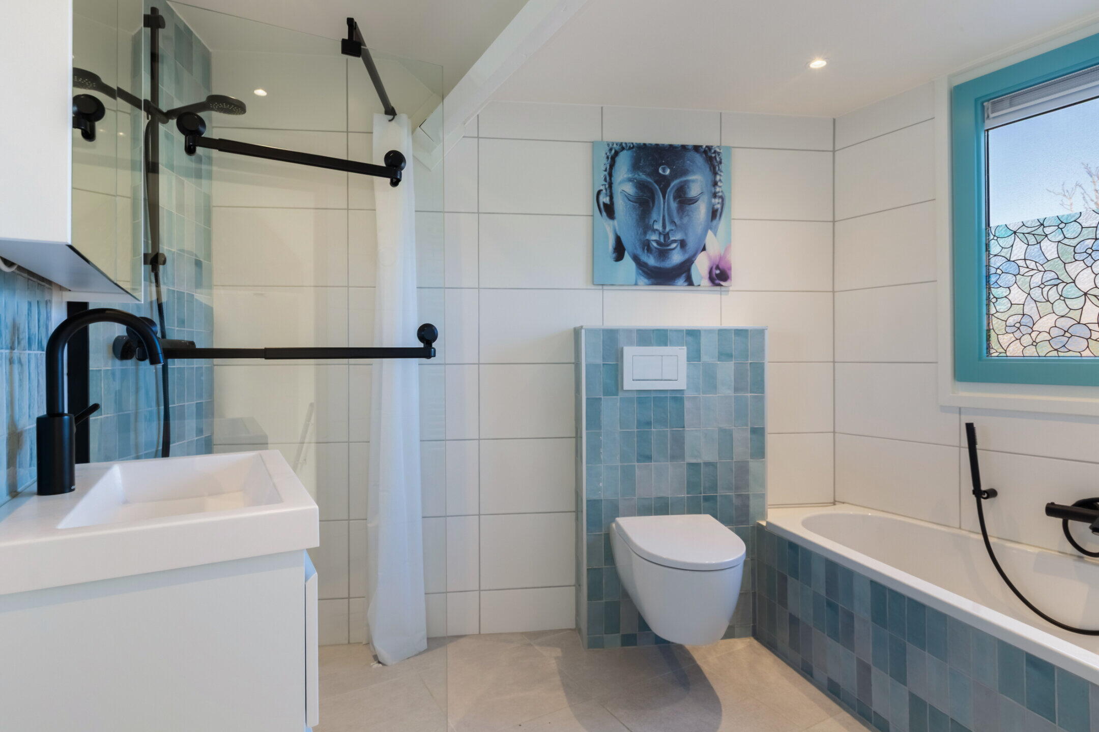 - Ligbad, toilet, wastafel, inloopdouche