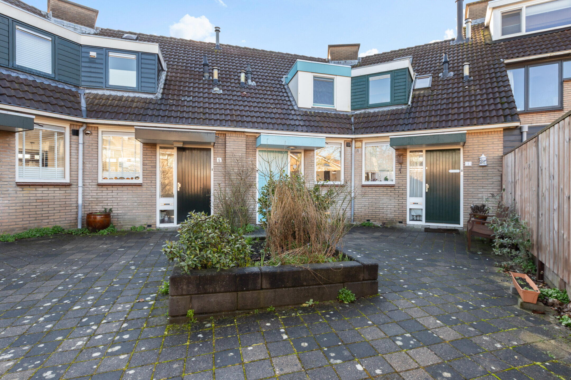 Aan de voorzijde is het woonhuis gelegen aan een rustig hofje bestaande uit 4 woonhuizen.